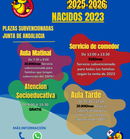 Éste año, como novedad se ofrece la gartuidad de la plaza para la atención socioeducativa de los alumnos nacidos en 2023. Pregúntanos por el proceso.